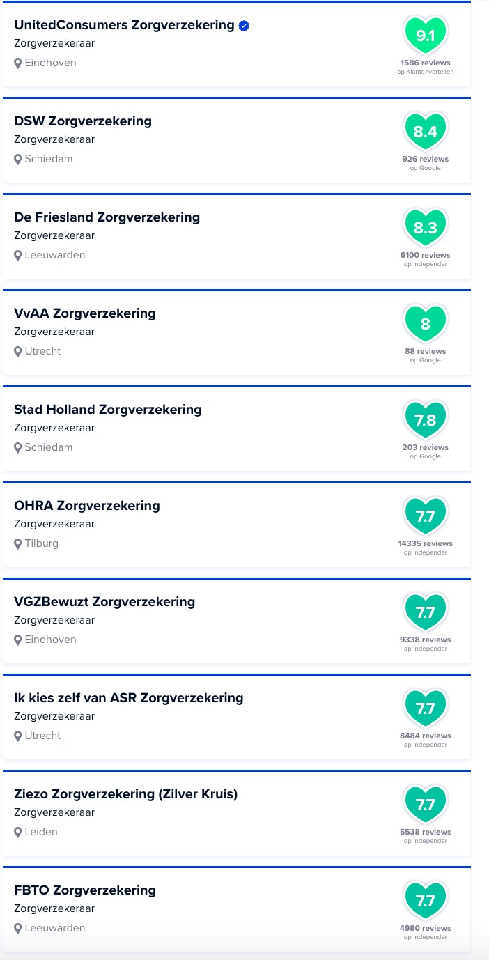 UnitedConsumers is voor 2026 als beste zorgverzekering van Nederland uit de bus gekomen. Dit gebeurt op basis van de reviewscores van zorgverzekeraars gemeten op google, facebook, klantenvertellen en independer, verzameld door zorgscore.nl.